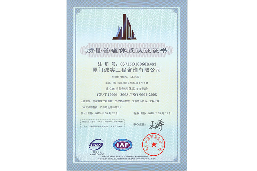 質(zhì)量管理體系認(rèn)證證書