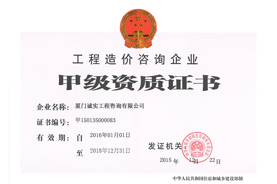 工程造價資質(zhì)正本(2016版)