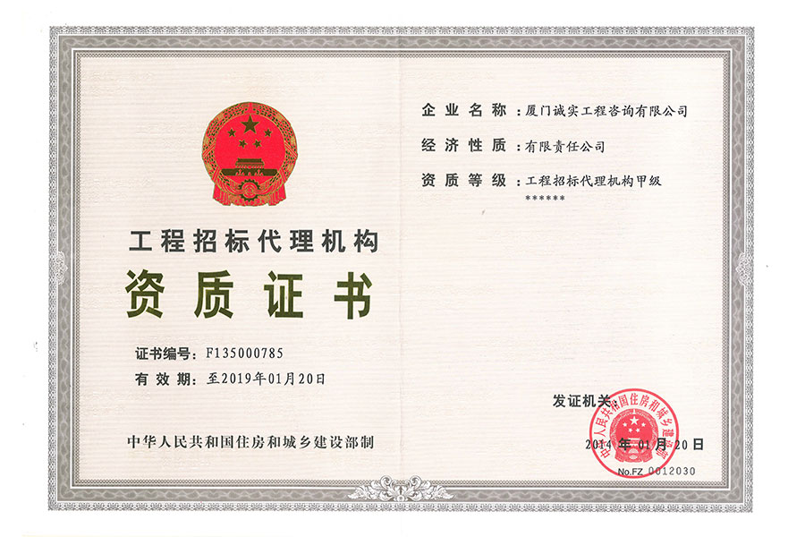 中央投資招標(biāo)代理資質(zhì)證書正本