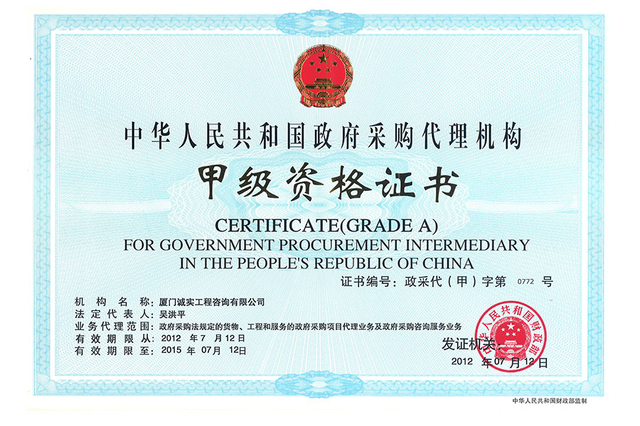 政府采購招標(biāo)代理資質(zhì)正本
