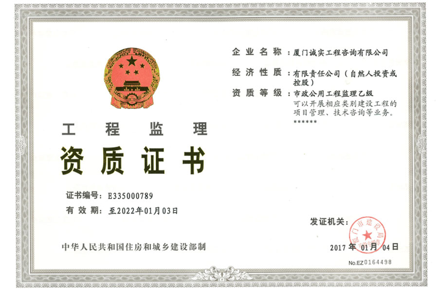 市政監(jiān)理乙級正本
